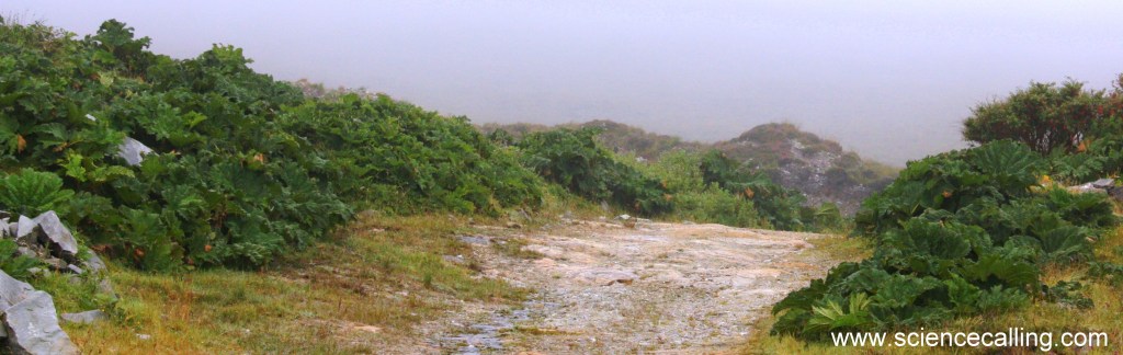 Last month I wrote a post on Irish species that were invasive in the United States, Irish Americans: invasive wildlife abroad. While writing that post I learnt that giant rhubarb, which is a native of Chile and Argentina, is one of Ireland’s most invasive plant species. Achill Island is heavily occupied by this invader. On a rainy day last week I decided to take a trip to my favourite childhood holiday destination to see how this alien species has changed Achill’s landscape.